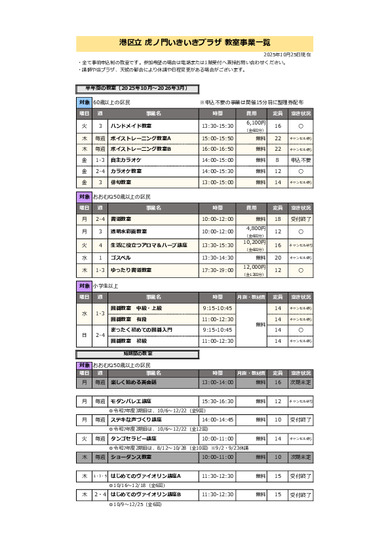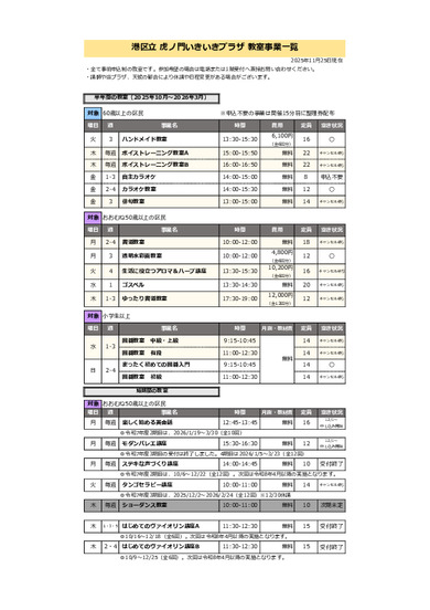 講師や当プラザ、天候の都合により休講や日程変更がある場合がございます。