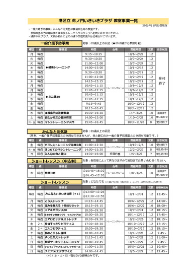 プログラムの詳しい内容につきましては、虎ノ門いきいきプラザまでお問い合わせください。